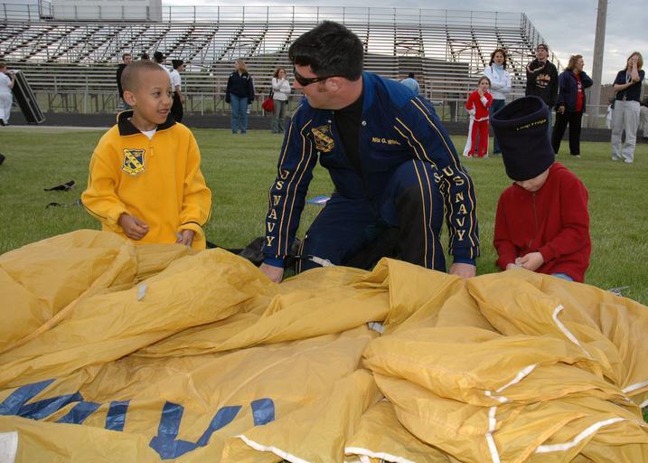Keywords: US Navy 060519-N-3342W-006 Navy Leap Frog Parachute Team member Petty Officer 1st Class Nix White teaches two young fans how to pack a parachute.jpg en Chicago Heights Ill May 19 2006 - Navy Leap Frog Parachute Team member Petty Officer 1st Class Nix White teaches two young fans how to pack a parachute at Bloom Trail High School near Chicago Heights The Leap Frog's jump highlighted Friday's Navy Week celebrations in the south Chicago suburb Navy Week Chicago is one of twenty such celebrations planned for U S cities this year by the Navy Office of Community Outreach NAVCO U S Navy photo by Senior Chief Photographer's Mate Douglas E Waite RELEASED 2006-05-19 060519-N-3342W-006 Navy http //www navy mil/view_image asp id 34745 U S Navy photo by Senior Chief Photographer's Mate Douglas E Waite PD-USGov-Military-Navy Images from US Navy location Chicago Heights Ill United States Navy Parachute Team Chicago Navy Week |