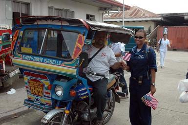 Keywords: US Navy 060601-N-9076B-105 Navy Petty Officer 3rd Class Adelaida Sojo hands out American flags to local Filipinos at the Zamboanga Medical Center during the Military Sealift Command (MSC) Hospital ship USNS Mercy's (T-AH 19) vi.jpg en Zamboanga Philippines June 1 2006 - Navy Petty Officer 3rd Class Adelaida Sojo hands out American flags to local Filipinos at the Zamboanga Medical Center during the Military Sealift Command MSC Hospital ship USNS Mercy's T-AH 19 visit Mercy is on a five-month deployment to South Asia Southeast Asia and the Pacific Islands U S Navy photo by Chief Photographer's Mate Don Bray RELEASED 2006-06-01 060601-N-9076B-105 Navy http //www navy mil/view_image asp id 35353 U S Navy photo by Chief Photographer's Mate Don Bray PD-USGov-Military-Navy United States Navy in Zamboanga City Kawasaki motorcycles |