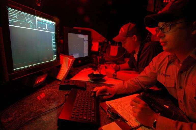 Keywords: US Navy 060621-N-1332Y-225 Quartermaster Seamen Stephen Schweppe and Matt Lenerville perform navigational duties on the bridge aboard the conventionally-powered aircraft carrier USS Kitty Hawk (CV 63).jpg en Philippine Sea June 21 2006 Quartermaster Seamen Stephen Schweppe and Matt Lenerville perform navigational duties on the bridge aboard the conventionally-powered aircraft carrier USS Kitty Hawk CV 63 during night flight operations Kitty Hawk is currently participating in Exercise Valiant Shield 2006 Valiant Shield focuses on integrated joint training among U S military forces enabling real-world proficiency in sustaining joint forces and in detecting locating tracking and engaging units at sea in the air on land and cyberspace in response to a range of mission areas U S Navy photo by Photographer s Mate Airman Adam York RELEASED 2006-06-21 060621-N-1332Y-225 Navy http //www navy mil/view_image asp id 36074 U S Navy photo by Photographer s Mate Airman Adam York PD-USGov-Military-Navy Valiant Shield 2006 Aboard USS Kitty Hawk CV-63 |