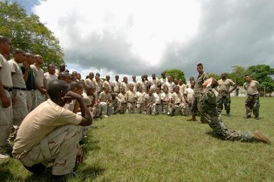 Keywords: US Navy 070828-N-0989H-035 Marine Corps Staff Sgt. William Sudbrock and Cpl. John Gruttadaurio, assigned to a U.S. Marine Corps mobile training team, demonstrate the proper procedures for executing a controlled fall to recruits.jpg en BELIZE CITY Belize Aug 28 2007 Marine Corps Staff Sgt William Sudbrock and Cpl John Gruttadaurio assigned to a U S Marine Corps mobile training team demonstrate the proper procedures for executing a controlled fall to recruits of the Belize Defense Force during small unit tactics training at the Price Barracks Task Group 40 9 is deployed under the operational control of U S Naval Forces Southern Command NAVSO for the Global Fleet Station GFS pilot deployment to the Caribbean Basin and Central America This deployment is designed to validate the GFS concept for the Navy and support NAVSO objectives for its area of responsibility by enhancing cooperative partnerships with regional maritime services and improving operational readiness for the participating partner nations U S Navy photo by Mass Communication Specialist 1st Class David Hoffman RELEASED 2007-08-28 070828-N-0989H-035 Navy http //www navy mil/view_image asp id 50159 U S Navy photo by Mass Communication Specialist 1st Class David Hoffman PD-USGov-Military-Navy United States Navy in Belize City Belize Defense Force |