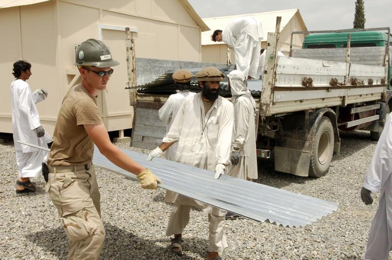 Keywords: US Navy 080630-N-6477M-432 Builder 2nd Class Ian M. Seiler, assigned to Naval Mobile Construction Battalion (NMCB) 3 Det. 4, works with Afghani nationals to unload a shipment of sheet metal.jpg en FIRE BASE SALERNO Afghanistan June 30 2008 Builder 2nd Class Ian M Seiler assigned to Naval Mobile Construction Battalion NMCB 3 Det 4 works with Afghani nationals to unload a shipment of sheet metal to be used as roofing material on berthing spaces being built for Afghan military personnel at Fire Base Salerno The sub-detachment of Seabees is deployed to this area less than 50 miles from the border of Pakistan in support of International Security Assistance Force U S Navy photo by Mass Communication Specialist 2nd Class Eli J Medellin/Released 2008-06-30 080630-N-6477M-432 Navy http //www navy mil/view_image asp id 62111 U S Navy photo by Mass Communication Specialist 2nd Class Eli J Medellin PD-USGov-Military-Navy Fire Base Salerno Construction in Afghanistan United States Navy in the War in Afghanistan 2001-present Naval Mobile Construction Battalion 3 Men of Afghanistan Military people and civilians Men at work Trucks in Afghanistan Builder United States Navy Wagon rigid trucks |