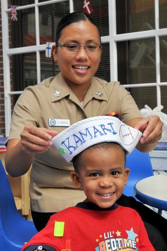 Keywords: US Navy 090727-N-1783P-001 Hospital Corpsman 2nd Class Reneline Llamas, assigned to Naval Health Clinic Charleston, places a decorated white Sailor's hat on a 4-year-old patient.jpg en CHARLESTON S C July 27 2009 Hospital Corpsman 2nd Class Reneline Llamas assigned to Naval Health Clinic Charleston places a decorated white Sailor's hat on a 4-year-old patient undergoing treatment at the Medical University of South Carolina Children's Hospital Llamas is working with Operation White Hat a Navy volunteer program to enhance the lives of patients at the hospital U S Navy photo by Machinist's Mate 3rd Class Juan Pinalez/Released 2009-07-27 090727-N-1783P-001 Navy http //www navy mil/view_image asp id 74574 U S Navy photo by Machinist's Mate 3rd Class Juan Pinalez PD-USGov-Military-Navy Images from US Navy location Charleston S C |