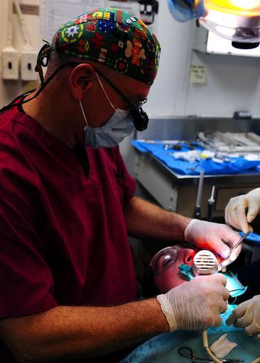 Keywords: US Navy 091017-N-8132M-002 Cmdr. George Haig, dental officer assigned to the amphibious assault ship USS Bataan (LHD 5), fills the tooth of Damage Controlman Fireman David Morris.jpg en MEDITERRANEAN SEA Oct 17 2009 Cmdr George Haig dental officer assigned to the amphibious assault ship USS Bataan LHD 5 fills the tooth of Damage Controlman Fireman David Morris The Bataan Amphibious Ready Group ARG is conducting maritime security operations in the U S 5th Fleet area of responsibility The 22nd Marine Expeditionary Unit 22nd MEU is serving as the reserve force for U S Central Command U S Navy photo by Mass Communication Specialist 2nd Class Kiona M Miller/Released 2009-10-17 091017-N-8132M-002 Navy http //www navy mil/view_image asp id 77718 U S Navy photo by Mass Communication Specialist 2nd Class Kiona M Miller PD-USGov-Military-Navy Aboard USS Bataan LHD-5