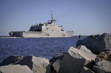 Keywords: US Navy 100216-N-1522S-009 The littoral combat ship USS Freedom (LCS 1) departs Naval Station Mayport for its first operational deployment.jpg en MAYPORT Fla Feb 16 2010 The littoral combat ship USS Freedom LCS 1 departs Naval Station Mayport for its first operational deployment Freedom will conduct counter-illicit trafficking operations and theater security cooperation in the U S 4th Fleet area of responsibility U S Navy photo by Mass Communication Specialist 1st Class Leah Stiles/Released 2010-02-16 100216-N-1522S-009 Navy http //www navy mil/view_image asp id 81983 U S Navy photo by Mass Communication Specialist 1st Class Leah Stiles PD-USGov-Military-Navy General views of USS Freedom LCS-1 |