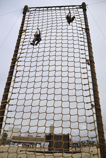 Keywords: US Navy 100610-N-4774B-041 Sailors climb a net wall as part of an obstacle course at Naval Amphibious Base Coronado.jpg en SAN DIEGO June 10 2010 Sailors assigned to Navy Public Affairs Support Element West climb a net wall as part of an obstacle course at Naval Amphibious Base Coronado The obstacle course is a major component for the training of Sailors in special operations and expeditionary forces U S Navy photo by Mass Communication Specialist 2nd Daniel Barker/Released 2010-06-10 100610-N-4774B-041 Navy http //www navy mil/view_image asp id 86943 U S Navy photo by Mass Communication Specialist 2nd Daniel Barker PD-USGov-Military-Navy Naval Amphibious Base Coronado Cargo nets climbing |