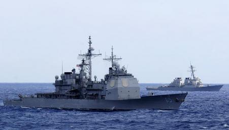 Keywords: US Navy 100711-N-7498L-364 USS Chosin (CG 65), left, and USS Benfold (DDG 65) participate in a surface-to-air missile exercise off the coast of Hawaii as part of Rim of the Pacific (RIMPAC) 2010 exercises.jpg en PACIFIC OCEAN July 11 2010 The guided-missile cruiser USS Chosin CG 65 left and the guided-missile destroyer USS Benfold DDG 65 participate in a surface-to-air missile exercise SAMEX off the coast of Hawaii as part of Rim of the Pacific RIMPAC 2010 exercises RIMPAC is a biennial multinational exercise designed to strengthen regional partnerships and improve multinational interoperability U S Navy photo by Mass Communication Specialist 2nd Class Mark Logico/Released 2010-07-11 100711-N-7498L-364 Navy http //www navy mil/view_image asp id 88664 U S Navy photo by Mass Communication Specialist 2nd Class Mark Logico PD-USGov-Military-Navy General views of USS Chosin CG-65 USS Benfold DDG-65 |