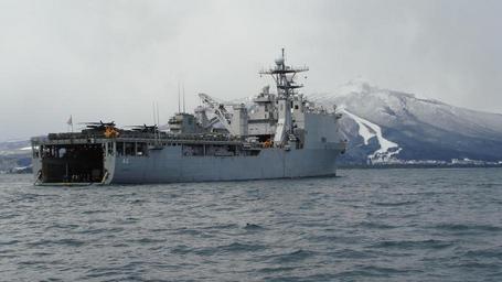 Keywords: US Navy 110317-N-3185B-024 The amphibious dock landing ship USS Tortuga (LSD 46) is anchored near Mount Kamafuse.jpg en OMINATO Japan March 17 2011 The amphibious dock landing ship USS Tortuga LSD 46 is anchored near Mount Kamafuse to disembark more than 300 military personnel and more than 90 Japan Ground Self-Defense Force vehicles for transportation to Ominato Tortuga is supporting earthquake and tsunami relief efforts during Operation Tomodachi U S Navy photo by Lt Louis Butler/Released 2011-03-17 110317-N-3185B-024 Navy http //www navy mil/view_image asp id 98705 U S Navy photo PD-USGov-Military-Navy General views of USS Tortuga LSD-46 USS Tortuga LSD-46 in Operation Tomodachi |