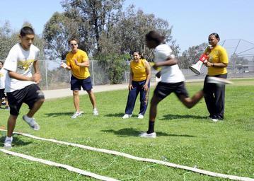 Keywords: US Navy 110622-N-CW427-033 Sailors cheer students while they complete an obstacle course during a physical fitness field day.jpg en SAN DIEGO June 22 2011 Hospital Corpsman 3rd Class Erick Adkins left Culinary Specialist 1st Class Rachel Mares and Culinary Specialist 2nd Class Neidra Herd assigned to Naval Medical Center San Diego cheer students while they complete an obstacle course during a physical fitness field day at Jean Farb Middle School Members of the medical center staff volunteered to lead more than 650 middle school students in various physical activities such as obstacle courses relay races and a tug-of-war U S Navy photo by Mass Communication Specialist Seaman Clay M Whaley/Released 2011-06-22 110622-N-CW427-033 Navy http //www navy mil/view_image asp id 103312 U S Navy photo by Mass Communication Specialist Seaman Clay M Whaley PD-USGov-Military-Navy Images from US Navy location San Diego California Obstacle courses |
