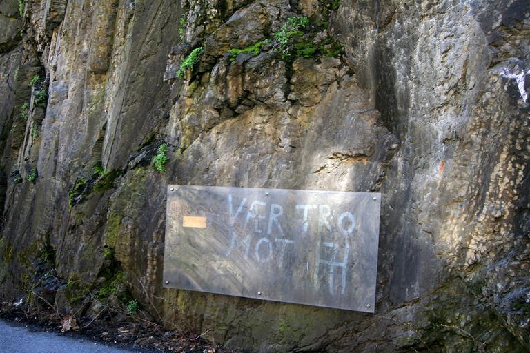 Keywords: Vær tro mot H7.jpg 59 55 19 7 N 10 43 19 2 E heading 210 Anti-German graffiti from World war II on a road cutting in Uranienborgveien central Oslo apparently behind a protective screen The text means Be true to H7 Haakon VII then exiled king of Norway Own 2008-04-19 Mahlum Graffiti in Norway Uranienborg Oslo World War II memorials in Oslo Anti-German propaganda Road cuttings |