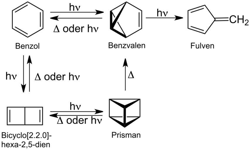 Keywords: Valence Isomers of Benzene V.1.svg en Valence_Isomers_of_Benzene de Valenzisomere von Benzol own Jü 2010-07-18 Valence_Isomerism Benzene derivatives