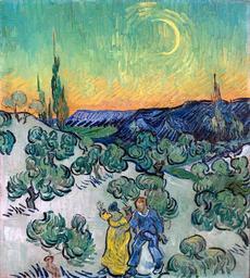 Keywords: Van Gogh - Passeio ao Crepúsculo.jpg Artwork Creator Vincent van Gogh Landscape with Couple Walking and Crescent Moon / Couple Walking among Olive Trees in a Mountainous Landscape with Crescent Moon Passeio ao Crepúsculo Paysage avec un couple de marche et croissant de lune Saint-Rémy 1890 05 Oil on canvas cm 49 5 45 5 Institution Museu de Arte de São Paulo São Paulo Brazil accession number 113 P http //www vangoghgallery com/catalog/Painting/263/Landscape-with-Couple-Walking-and-Crescent-Moon html vangoghgallery com Van Gogh catalogues 704 1981 http //www masp art br/masp2010/acervo_detalheobra php id 280 Museu de Arte de São Paulo Other versions PD-old-100 DEFAULTSORT Van Gogh 1890-05 Saint-Rémy - Landscape with Couple Walking and Crescent Moon F_704 JH_1981 jpg Couple Walking among Olive Trees in a Mountainous Landscape with Crescent Moon |