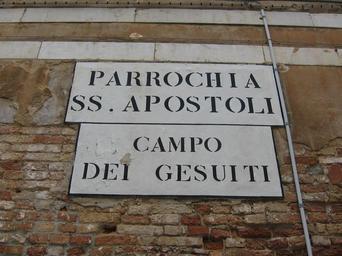 Keywords: Venise, campo dei gesuiti.jpg en Street sign close to the Jesuit church in Venice Italy own Grentidez 2012-09 Released for general use Street signs in Venice Double street signs Society of Jesus Cc-zero