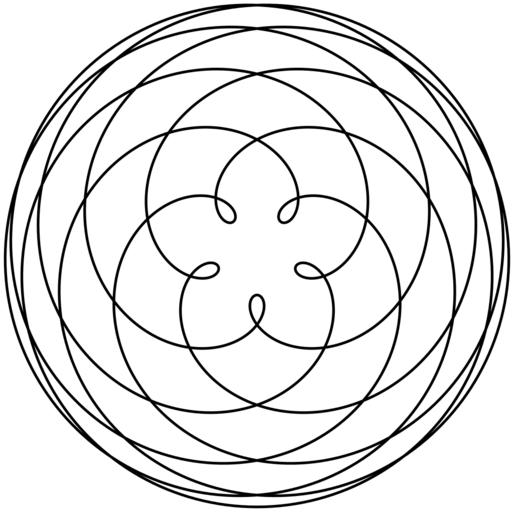 Keywords: Venus geocentric orbit curve simplified Line (pentagram).svg A simplified plot of the position of Venus with respect to the Earth i e geocentric perspective For this graphic Venus and the Earth are assumed to be in coplanar concentric perfect circular orbits around the sun and Venus' and Earth's orbital periods are assumed to be in an exact 8 13 ratio so that the size of Venus' orbit with respect to the Earth's is set as the cube root of 8²/13² by Kepler's third law or about 0 7234876 AU The resulting 5-fold symmetric curve is sometimes called a pentagram though it has little resemblance to a conventional 5-pointed star The innermost loops near the center are where Apparent retrograde motion is observed See File Venus geocentric orbit curve simplified pentagram svg for this plotted as a series of points instead of a continuous curve and see File Venus pentagram png for an alternative more astronomically-correct less simplified plot The SVG was generated by means of the following self-written vector PostScript source code <pre> 306 396 translate 3152 dup scale 9 setlinewidth /angq add 18 mul dup 8 div exch 13 div def /getx angq sin 550 mul exch sin 397 91817792197 mul sub def /gety angq cos -550 mul exch cos -397 91817792197 mul sub def /pi 6 28318530718 def 0 -152 08182207803 moveto 0 1 2079 /q exch def q 0 getx q 1 getx q -1 getx sub pi div add q 0 gety q 1 gety q -1 gety sub pi div add q 1 getx q 2 getx q 0 getx sub pi div sub q 1 gety q 2 gety q 0 gety sub pi div sub q 1 getx q 1 gety curveto for closepath stroke showpage EOF</pre> 2016-03 AnonMoos <gallery>File Venus geocentric orbit curve simplified pentagram svg Series of points</gallery> Orbit of Venus Astronomical diagrams 5-fold dihedral symmetry Images with PostScript source code |