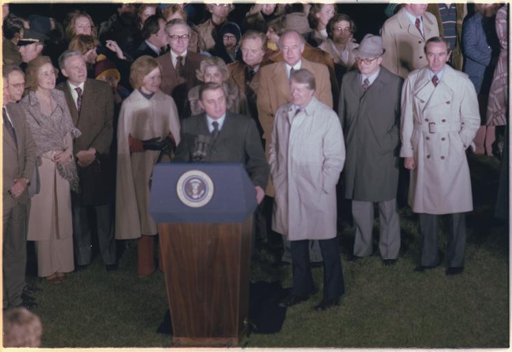 Keywords: Vice President Walter Mondale welcomes Jimmy Carter and Rosalynn Carter home from their Asian-European trip. - NARA - 177536.tif Scope and content General notes 177536 Local identifier President 1977-1981 Carter White House Staff Photographers 01/20/1977 - 01/20/1981 Jimmy Carter Library NLJC 441 Freedom Parkway Atlanta GA 30307-1498 1978-01-06 Record group Collection JC-WHSP Carter White House Photographs Collection 01/20/1977 - 01/22/1981 Record group ARC 1120 Carter White House Photographs Presidential compiled 01/20/1977 - 01/22/1981 Series ARC 173341 File unit President and Mrs Carter return from 7 Nation European/Mid-East trip 1977/1978 01/06/1978 - 01/06/1978 File unit ARC 177535 Variant control numbers NAIL Control Number NLC-WHSP-C-03949-24 yes Other versions NARA-cooperation PD-USGov Walter Mondale |