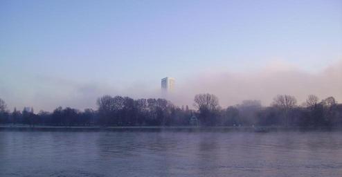 Keywords: Victoria -Turm im Nebel.jpg en Mannheim own Immanuel Giel 2007-01 Rhine in Mannheim Victoria-Haus Mannheim