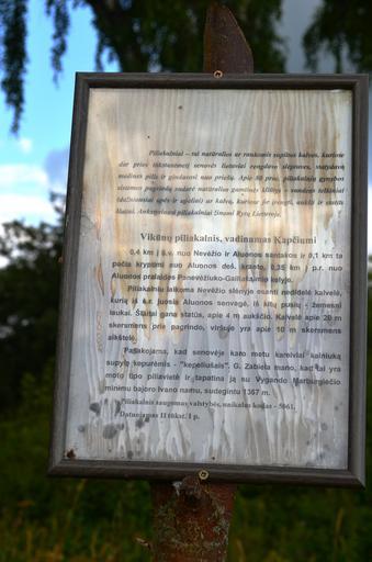 Keywords: Vikūnų piliakalnis 1.JPG Informacinė lentelė Vikūnų piliakalnis Kauno raj own work 2013-07-06 Šarūnas Šimkus <span class signature-talk >talk</span> PD 55 9 21 88 N 23 48 25 54 E region LT Hillforts in Kaunas District Municipality