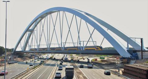 Keywords: outdoor zandhazenbrug brug bridge railroad bridge railroadbridge spoorbrug treinbrug train bridge trainbridge indfrastructure infrastructuur snelweg a1 snelwega1 muiderberg virm verlengt interregio materieel verlengtinterregiomaterieel ns nederlndse spoorwegen nederlndsespoorwegen trein train netherlands snelweg highway freeway autosnelweg veel verkeer veelverkeer heavy traffic heavytraffic auto's autos veel auto's veelautos many cars manycars cars bovenleiding bovenleidingsmasten bovenleidingportalen overhead wires overheadwires overhead lines overheadlines bovenleidingmasten architecture steel arch bridge building structure infrastructure building De nieuwe spoorbrug over de A1 t.h.v. Muiderberg. De nieuwe spoorbrug over de A1 t.h.v. Muiderberg. |