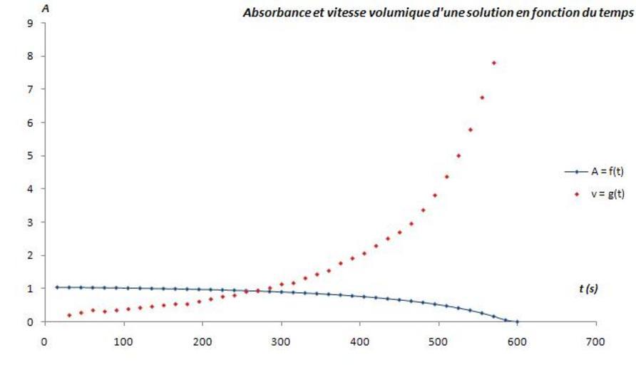 Keywords: Vitesse volumique et absorbance d'une solution de permanganate de potassium et d'acide oxalique en fonction du temps.JPG Vitesse volumique et absorbance d'une solution de permanganate de potassium et d'acide oxalique en fonction du temps Excel 2007 10/10/07 Anthony Potassium permanganate Oxalic acid |