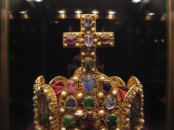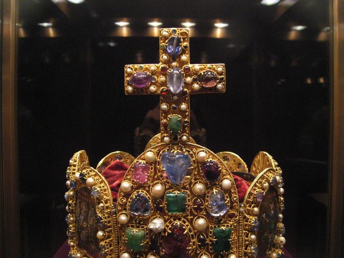 Keywords: Weltliche Schatzkammer Wien (168).JPG Die Reichskrone Westdeutsch 2 H 10 Jahrhundert; das Kronenkreuz einer Hinzufügung des frühen 11 Jahrhunderts; der Bügel aus der Zeit Kaiser Konrads II 1024-1039 ; die rote Samthaube aus dem 18 Jahrhundert Gold Email Zellenschmelz Edelsteine Perlen Stirnplatte H 14 9 cm B 11 2 cm ; Kronenkreuz H 9 9 cm SK Inv -Nr XIII 1 The Imperial Crown Western Germany 2nd half of the 10th century The cross is an addition from the early 11th century; the arch dates from the reign of Emperor Conrad II ruled 1024-1039 ; the red velvet cap is from the 18th century Gold cloisonné enamel precious stones pearls Brow plate H 14 9 cm W 11 2 cm; cross H 9 9 cm SK Inv No XIII 1 Own 2007-10 MyName Gryffindor 100px 100px 100px part of panorama Weltliche_Schatzkammer_Wien_ P01 jpg Velvet Secular and Ecclesiastical Treasury |