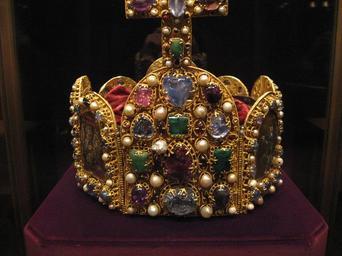 Keywords: Weltliche Schatzkammer Wien (169).JPG Die Reichskrone Westdeutsch 2 H 10 Jahrhundert; das Kronenkreuz einer Hinzufügung des frühen 11 Jahrhunderts; der Bügel aus der Zeit Kaiser Konrads II 1024-1039 ; die rote Samthaube aus dem 18 Jahrhundert Gold Email Zellenschmelz Edelsteine Perlen Stirnplatte H 14 9 cm B 11 2 cm ; Kronenkreuz H 9 9 cm SK Inv -Nr XIII 1 The Imperial Crown Western Germany 2nd half of the 10th century The cross is an addition from the early 11th century; the arch dates from the reign of Emperor Conrad II ruled 1024-1039 ; the red velvet cap is from the 18th century Gold cloisonné enamel precious stones pearls Brow plate H 14 9 cm W 11 2 cm; cross H 9 9 cm SK Inv No XIII 1 Own 2007-10 MyName Gryffindor 100px 100px 100px part of panorama Weltliche_Schatzkammer_Wien_ P01 jpg Secular and Ecclesiastical Treasury |