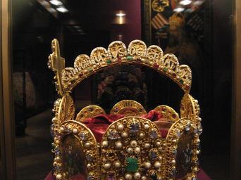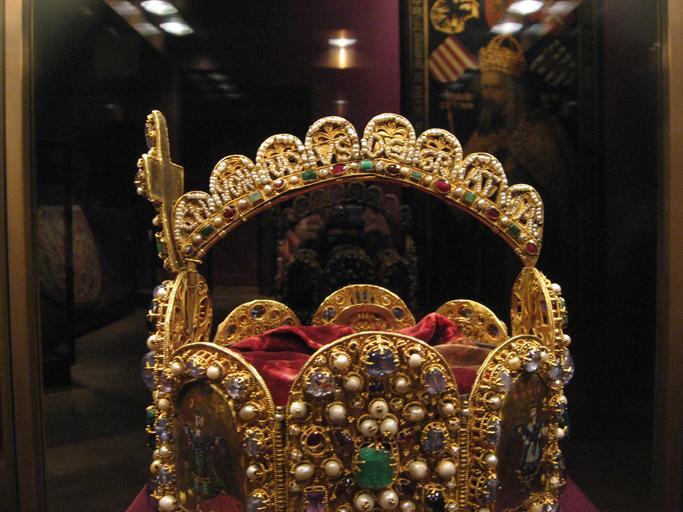 Keywords: Weltliche Schatzkammer Wien (176).JPG Die Reichskrone Westdeutsch 2 H 10 Jahrhundert; das Kronenkreuz einer Hinzufügung des frühen 11 Jahrhunderts; der Bügel aus der Zeit Kaiser Konrads II 1024-1039 ; die rote Samthaube aus dem 18 Jahrhundert Gold Email Zellenschmelz Edelsteine Perlen Stirnplatte H 14 9 cm B 11 2 cm ; Kronenkreuz H 9 9 cm SK Inv -Nr XIII 1 The Imperial Crown Western Germany 2nd half of the 10th century The cross is an addition from the early 11th century; the arch dates from the reign of Emperor Conrad II ruled 1024-1039 ; the red velvet cap is from the 18th century Gold cloisonné enamel precious stones pearls Brow plate H 14 9 cm W 11 2 cm; cross H 9 9 cm SK Inv No XIII 1 Own 2007-10 MyName Gryffindor part of panorama Weltliche Schatzkammer Wien 176 pano jpg Secular and Ecclesiastical Treasury |