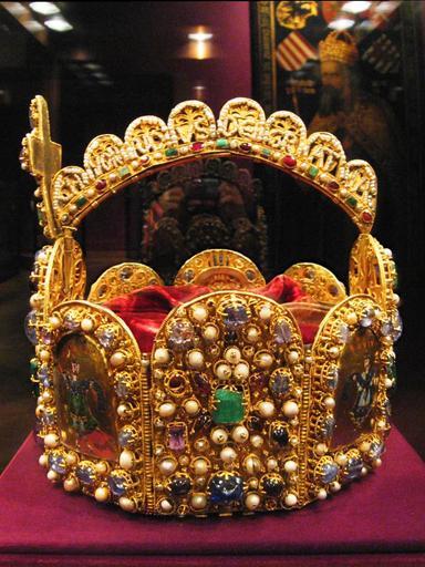 Keywords: Weltliche Schatzkammer Wien (176)pano.jpg Die Reichskrone Westdeutsch 2 H 10 Jahrhundert; das Kronenkreuz einer Hinzufügung des frühen 11 Jahrhunderts; der Bügel aus der Zeit Kaiser Konrads II 1024-1039 ; die rote Samthaube aus dem 18 Jahrhundert Gold Email Zellenschmelz Edelsteine Perlen Stirnplatte H 14 9 cm B 11 2 cm ; Kronenkreuz H 9 9 cm SK Inv -Nr XIII 1 The Imperial Crown Western Germany 2nd half of the 10th century The cross is an addition from the early 11th century; the arch dates from the reign of Emperor Conrad II ruled 1024-1039 ; the red velvet cap is from the 18th century Gold cloisonné enamel precious stones pearls Brow plate H 14 9 cm W 11 2 cm; cross H 9 9 cm SK Inv No XIII 1 Own 2007-10 MyName Gryffindor Imperial Crown of the Holy Roman Empire Secular and Ecclesiastical Treasury |