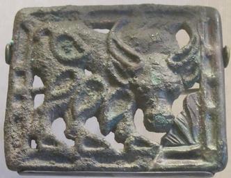 Keywords: Western Han Dynasty bronze plaque with yak design, HAA.JPG en Western Han Dynasty 220 BCE-9 CE bronze plaque with yak design Honolulu Academy of Arts own Hiart photo 2011 Chinese bronzes in the Honolulu Museum of Art Bronze of the Western Han Dynasty Bronze plaques Yaks of China Yaks in art Cc-zero |