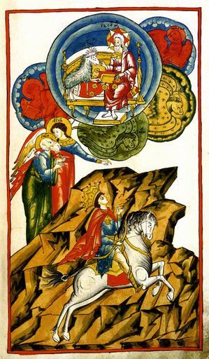 Keywords: White Rider from Tolkovy Apocalyps 17th century.jpg Lifting the First Seal of Apocalypse and the White Rider of war Illuminated page not an icon from the 17th century Tolkovy Apocalypse Moscow first half of the 17th century Note that the four six-winged Beasts surrounding the divine Throne Revelation 4 5-9 round about the throne were four beasts full of eyes before and behind are clearly labelled as the Four Evangelists John Luke Mathew and Mark ; John of Patmos is presented as a person and Evangelist John as a spirit Scan from И Л Бусева-Давыдова Культу а и искусство в эпоху пе емен - Инд ик 2008 ISBN 978-5-85759-439-1 First half of the 17th century Author PD PD-Art Apocalypse manuscripts Book with seven seals Four Horsemen of the Apocalypse 17th-century paintings from Russia Symbols of Evangelists Saint John the Evangelist on Patmos ImageNote 1 164 900 232 580 1400 2400 2 John of Patmos ImageNoteEnd 1 ImageNote 2 304 776 240 592 1400 2400 2 The Angel ImageNoteEnd 2 ImageNote 3 336 1232 888 1068 1400 2400 2 White Rider Revelation 6 2 And I saw and behold a white horse and he that sat on him had a bow; and a crown was given unto him and he went forth conquering and to conquer ImageNoteEnd 3 ImageNote 4 100 476 268 344 1400 2400 2 Mathew Rev 5 7 and the third beast had a face as a man ImageNoteEnd 4 ImageNote 5 1040 592 280 336 1400 2400 2 Luke Rev 5 7 and the second beast like a calf ImageNoteEnd 5 ImageNote 6 1048 156 248 344 1400 2400 2 Mark Rev 5 7 and the fourth beast was like a flying eagle ImageNoteEnd 6 ImageNote 7 588 824 420 260 1400 2400 2 John Rev 5 7 And the first beast was like a lion ImageNoteEnd 7 ImageNote 8 604 440 236 252 1400 2400 2 The Book of the Seven Seals ImageNoteEnd 8 ImageNote 9 672 128 300 672 1400 2400 2 King Rev 5 1 And I saw in the right hand of him that sat on the throne a book written within and on the backside sealed with seven seals ImageNoteEnd 9 ImageNote 10 412 264 248 404 1400 2400 2 Lamb Rev 4 6 And I beheld and lo in the midst of the throne and of the four beasts and in the midst of the elders stood a Lamb as it had been slain having seven horns and seven eyes which are the seven Spirits of God sent forth into all the earth ImageNoteEnd 10 |
