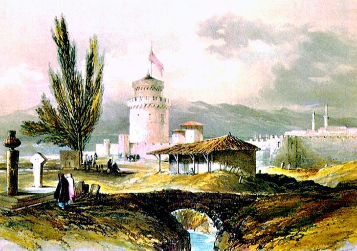 Keywords: White Tower 19th century.jpg Ο Λευκός Πύργος της Θεσσαλονίκης σε σχέδιο του ρώτου μισού του 19ου αιώνα White Tower of Thessaloniki in a painting of the first middle of 19th century http //www vlachophiles net/lear htm First middle of 19th century author PD-Old White Tower Thessaloniki PD-Art Historical images of Thessaloniki 1850s Thessaloniki in the 19th century |