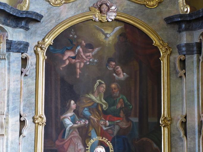 Keywords: Willgottheim StMaurice 43.JPG Alsace Bas-Rhin Willgottheim Eglise St Maurice Autel secondaire 1778 avec tableau de Sébastien Koch Nativité de la Vierge 1776-1778 own 2012 Ralph Hammann Cc-zero Artwork / Œuvre d'art / Kunstwerk oil canvas cm 195 148 Eglise Saint-Maurice Willgottheim Autel secondaire PM67000448 IM67010045 object history Comme pour le maître-autel l'accord pour les tableaux des autels latéraux fut passé avec le peintre de Haguenau Sébastien Koch le 5 février 1776 Ils seront achevés en 1778 other versions Ralph Hammann PD-old-100 accession number Altar of the Nativity of Église Saint-Maurice de Willgottheim Photographs of Willgottheim by Ralph Hammann Taken with Canon PowerShot SX20 IS Objets monuments historiques in Bas-Rhin church paintings Baroque church paintings in Alsace 18th-century church paintings in Alsace 1778 oil on canvas paintings in France 1778 works in Alsace 18th-century paintings of Virgin Mary Paintings of birth of Mary Paintings of putti in France 18th-century paintings of putti |