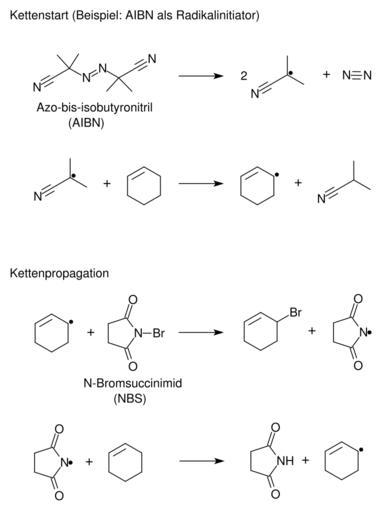 Keywords: Wohl-Ziegler.svg de Wohl-Ziegler-Reaktion Own work by author S_nova 2008-07-26 Chemical reactions