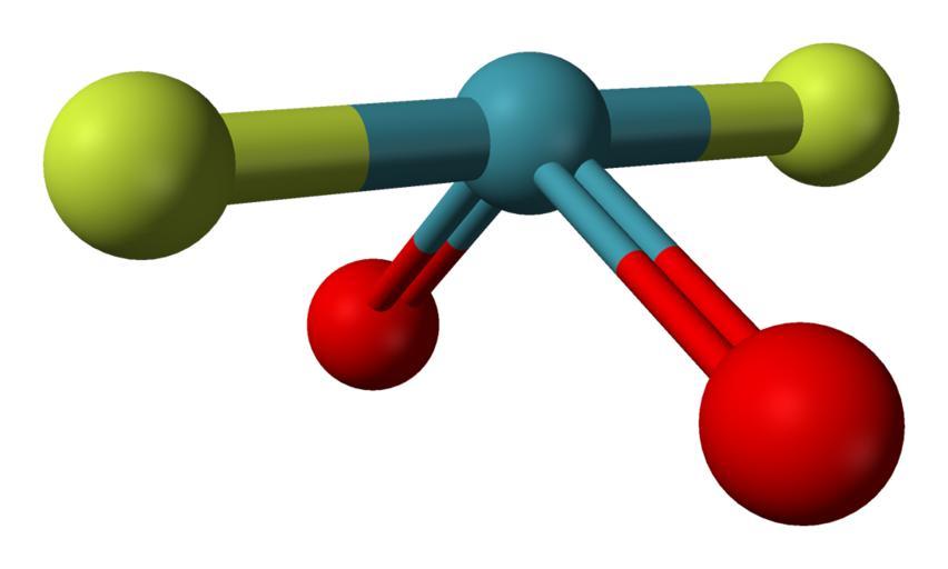 Keywords: Xenon-dioxydifluoride-3D-balls.png Ball-and-stick model of xenon dioxydifluoride XeO<sub>2</sub>F<sub>2</sub> Structural data from http //dx doi org/10 1063/1 1669818 J Chem Phys 49 253 1968 own 2007-09-22 Ben Mills Benjah-bmm27 Images by Ben Mills Xenon dioxydifluoride |