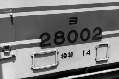 Keywords: Yo 28002 Car number plate.jpg ja 783系が 電化区間を走行するためじ準備された電源車ヨ28000 en A YO 28000 car number plate The carriage was used for power supply for series 783 train when the train run line without electification 1989-07-30 own Hahifuheho other versions cc-zero JNR Yo 8000 Black and white photographs of trains in Japan 1989 in rail transport in Japan July 1989 photographs Generator cars of Japan |