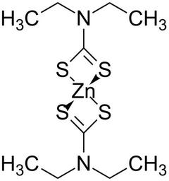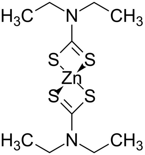 Keywords: Zinc diethyldithiocarbamate 200.svg validSVG Structure of Zinc diethyldithiocarbamate Struktur von Zinkdiethyldithiocarbamat Own 2014-04-07 Emeldir <span class signature-talk >talk</span> PD-chem Zinc complexes Dithiocarbamates